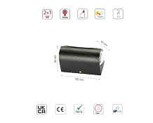 Светодиодный уличный настенный светильник PL-543-S 2x1W SAND BLACK 3000K IP54 183-03324