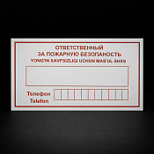 Информационная табличка предназначена для размещения данных об ответственном лице за пожарную безопасность на объекте. Используется в офисах, торговых помещениях, складах, производственных и административных зданиях.