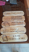 Баня в целом- очень позитивная атмосфера. Без табличек для сауны можно обойтись. Но оригинальная надпись, выполненная резьбой по дереву, роверная, лазерная надписи на дереве или на фанере , обязательно вызовет улыбку, и внесет свою лепту в ту самую позитивную атмосферу бани. Эта небольшая дощечка с оригинальной надписью - как раз то, что дополнит интерьер или экстерьер вашей сауны или станет прекрасным подарком. Например, на "новоселье" в только что построенной баньке друзей или родственников - они уж точно оценят такой подарок.