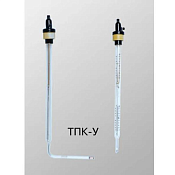 ТПК-У - стеклянные ртутные электроконтактные с угловой погружаемой нижней частью. Термометры состоят из стеклянной оболочки с вложенной внутрь шкальной пластиной из стекла молочного цвета, устройства для магнитной регулировки положения рабочего контакта в пределах диапазона температур шкалы, контактов и проводника. На шкальной пластине нанесены две шкалы: верхняя - для настройки термометра на необходимую температуру, нижняя - для измерения температуры.