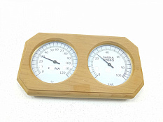Термометр-гигрометр для бани и сауны 2 в 1. Страна производитель: Россия. Банный термометр-гигрометр изготовлен из термированной древесины. Банный термометр-гигрометр станет вашим верным помощником и украсит любую парилку. Он состоит из механизма, способного выдерживать температуру до 120 градусов.