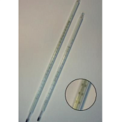 Стеклянный термометр с вложенной шкальной пластиной. В верхней части термометра, для его удержания, имеется шарик диаметром 6мм. Термометрическая жидкость галинстан (сплав 3-х металлов: галий, индий, олово).