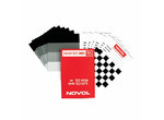Бумажная тест – пластина помогает правильно подобрать цвет базового лака. С одной стороны продукта находится черно-белая шахматная доска, которая служит для оценки силы покрытия лака. С другой стороны карта покрыта полосами в спектральных оттенках серого (белый, светло-серый, серый, темно-серый, черный), что позволяет оценить влияние цвета основания на окончательный колористический эффект. Позволяет сэкономить время, усилия и расходы, связанные с необходимостью внесения поправок на последующем этапе лакирования.