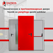 ООО «Dacros» — это современное предприятие, которое с 2017 года активно развивается в сфере производства металлических входных, технических и противопожарных дверей, разработанных собственными конструкторами, а также электрощитов и трансформаторных подстанций. Наша команда из более чем 150 высококвалифицированных специалистов работает на просторных и современных производственных площадках. Выпускаемая продукция: 1. Входные металлические двери 2. Подъездные двери 3. Технические двери 4. Противопожарные двери 5. Электрощиты ВРУ 6. Трансформаторные подстанции 7. Противопожарные ящики 8. Декоративные решетки под кондиционеры 9. Шкафы для гардероба/инструментов 10. Солнечные панели