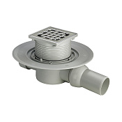Комплектация поворотный и регулируемый по высоте надставной элемент 100x100 мм рамка для установки решетки сделана из пластика заглушка штампованная решетка из нержавеющей стали 1.4301 фланец для нанесения/закрепления гидроизоляции съемное устройство для защиты от неприятного запаха из системы канализации ввод для подключения дополнительных сантехприборов DN40 выпуск на шарнирном соединении