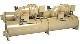 Центробежные агрегаты водяного охлаждения внутренней установки Q от 5300 до 14000 кВт двухкомпрессорные. Хладагент R-1233zd (E) с потенциалом глобального потепления (GWP<1). Высокая производительность и энергоэффективность. Простота обслуживание и эксплуатации.