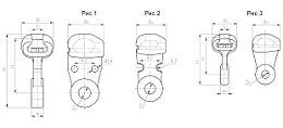 | Марка ушка | Рис. | Размеры, мм | Масса, кг | Разрушающая нагрузка, кН (т.с.), не менее | ||||||