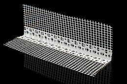 - Угол ПВХ с сеткой – это пластиковый перфорированный уголок, который используется для перекрытия швов утеплителя на откосах и углах .