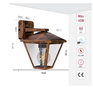 Уличный настенный светильник A0302 E27 Antique (TEKLED) 252-03008