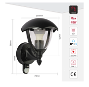 Уличный настенный светильник B0301 E27 Black Sensor (TEKLED) 252-03026