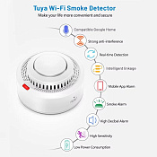 Надёжное решение для безопасности дома и офиса. При обнаружении дыма издаёт громкий сигнал и одновременно отправляет уведомление на смартфон через приложение Tuya Smart / Smart Life.