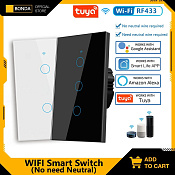 Современный настенный выключатель с управлением через приложение Tuya Smart / Smart Life. Поддерживает как сенсорное управление, так и дистанционное через смартфон.