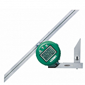Диапазон измерения: 0-360° Цена деления: 10″/0,005° Показания в градусах (например, 32.655°) и градусах/минутах/секундах (например, 32°39’30”) Установочные кнопки: предустановка считывания, изменение направления измерения Кнопка выбора режима: 0-90°, 0-180° или 0-360° Кнопка ZERO/ON/OFF: обнуление, включить/выключить Элемент питания CR2032 Автоматическое отключение питания Вывод данных Поставляется с 150мм поверочным угольником (установка 90°) Изготовлено из нержавеющей стали Дополнительные принадлежности: кабель вывода данных 300мм лезвие к комплекте