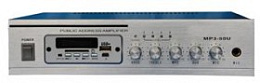 1 MIC вход, 1 Aux вход,1 AUX выход ,Индивидуальный контроль для MIC,MP3 и AUX вход. Bass & Treble control.С USB интерфейсом /SD card и FM Радио.Максимальная выходная мощность: 50WВыходное напряжение: 4-16?,100V ,1 зона.Частотный диапозон:40Hz-18KHz±0.5dBS
