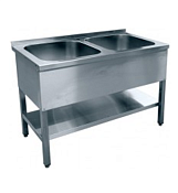 Ванна 2-х секционная ВМП-6-2-5 РН используется на предприятиях общественного питания. Преимуществом является то, что она – цельнотянутая и не имеет сварных швов. Этот фактор обеспечивает легкость в гигиенической чистке, обслуживании, а также предотвращает скопление грязи и бактерий в швах конструкции. В столешнице ванны предусмотрено место под смеситель. оснащена пристенным бортиком и комплектуется сливным сифоном. Сварной каркас из квадратной трубы с полкой изготовлены из нержавеющей стали. Размеры ванны:500х500х300 мм Количество ванн:2 шт. Габаритные размеры:1200х600х860 ммМасса:37 кг Имеет регулируемые по высоте ножки.