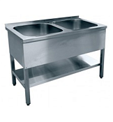 Ванна 2-х секционная ВМП-7-2-5 РН используется на предприятиях общественного питания. Преимуществом является то, что она – цельнотянутая и не имеет сварных швов. Этот фактор обеспечивает легкость в гигиенической чистке, обслуживании, а также предотвращает скопление грязи и бактерий в швах конструкции. В столешнице ванны предусмотрено место под смеситель. оснащена пристенным бортиком и комплектуется сливным сифоном. Сварной каркас из квадратной трубы с полкой изготовлены из нержавеющей стали. Размеры ванны:500х500х300 мм Количество ванн:2 шт. Габаритные размеры:1200х700х860 ммМасса:40 кг Имеет регулируемые по высоте ножки.