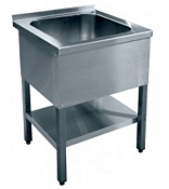 Ванна 1-о секционная ВМП-7-1-6 РН используется на предприятиях общественного питания. Преимуществом является то, что она – цельнотянутая и не имеет сварных швов. Этот фактор обеспечивает легкость в гигиенической чистке, обслуживании, а также предотвращает скопление грязи и бактерий в швах конструкции. В столешнице ванны предусмотрено место под смеситель. оснащена пристенным бортиком и комплектуется сливным сифоном. Сварной каркас из квадратной трубы с полкой изготовлены из нержавеющей стали. Размеры ванны:600х500х300 мм Количество ванн:1 шт. Габаритные размеры:735х700х860 ммМасса:27кг Имеет регулируемые по высоте ножки.
