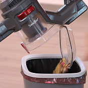 Модель объединяет функции вертикального и ручного пылесоса, что делает её универсальным решением для ежедневной уборки пола, мебели, плинтусов и труднодоступных мест. Устройство лёгкое, эргономичное и мобильное.