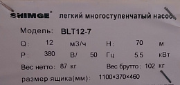 Технические характеристики насоса SHIMGE BLT12-7