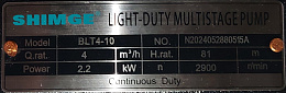 Технические характеристики насоса SHIMGE BLT4-10