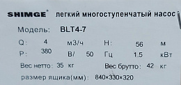 Технические характеристики насоса SHIMGE BLT4-7