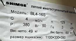 Технические характеристики насоса SHIMGE BL4-16S