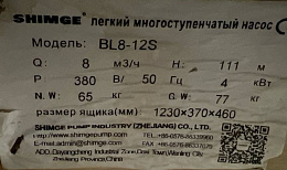 Вертикальный многоступенчатый насос высокого давления SHIMGE BL 8-12S