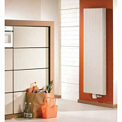 Вертикальный декоративный радиатор Faro V с плоской передней панелью, мягкой ребристой отделкой и боковыми накладками.