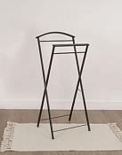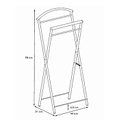 Компактная складная вешалка не займет много места и впишется в любой интерьер. При необходимости ее легко можно сложить и убрать за шкаф. Имеет плечико для костюма или школьной формы, а так-же несколько перекладин для брюк, джинсов и т.п. Ее можно использовать как стойку для отпаривания. Долговечная, благодаря каркасу из стали с полимерно-порошковым покрытием. Прочная конструкция выдерживает до 10 кг вещей. Пластиковые заглушки на ножках защитят пол от царапин.