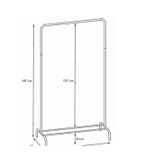 Надежный каркас вешалки позволяет выдерживать нагрузку до 20 кг. и вместить до 15 плечиков с верхней одеждой. Сборно-разборная конструкция с легкостью, быстро собирается или разбирается если нет необходимости в хранении вещей. Вешалка изготовлена из стальной трубы диаметром 18 мм с нанесением полимерно-порошкового покрытия.