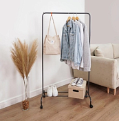 Пластиковый крючок крепится на вешало и предназначен для сумок, зонтов, шляп и прочих аксессуаров. Крючки по бокам стоек увеличивают функционал изделия, а с помощью колёсиков вешалку удобно перемещать по комнате. Полка снизу позволяет разместить обувь или коробки. Вешалку можно использовать в качестве стойки для отпаривания. Изделие в картонной упаковке с удобной ручкой - легко донести от пункта выдачи до дома и вручить в качестве подарка. Собирается легко по схеме сборки, вся фурнитура и инструмент в комплекте.