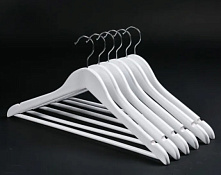 Многие вещи в отеле меняются и идут в ногу со временем, но есть и то, что является неизменным атрибутом любого хорошего номера . К этим вещам можно отнести и вешалки для номерного фонда . Выполненные из дерева, с перекладиной для брюк или с металлическими зажимами. Многие гостиницы используют специальные антивандальные вешалки которые можно использовать только со специальным креплением ,установленным в отеле ,Мы можем предложить различные системы , цвета дерева и формы вешалок. На вешалке можно разместить логотип