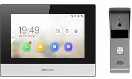Гибридный комплект домофона Hikvision DS-KIS303-P включает монитор домофона DS-KH6320-WTDE1 и вызывную панель DS-KB2421T-IM. Монитор DS-KH6320-WTDE1 с диагональю 7 дюймов имеет сенсорный экран, может подключаться к мобильному приложению Hik-connect для приема звонков и открытия двери через вызывную панель. Также монитор DS-KH6320-WTDE1 может подключаться к роутеру через провод (вход Ethernet) или по Wi-Fi. Вызывная аналоговая панель DS-KB2421T-IM подключается к монитору DS-KH6320-WTDE1 с помощью 4х жильного провода (плюс, минус, видел, аудио). DS-KB2421T-IM имеет сухие контакты NO и NC и может управлять открытием электромеханического и электромагнитного замками. Комплект домофона Hikvision DS-KIS303-P подходит для частного дома или офиса. экран-1024 × 600