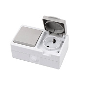 Выключатель одноклавишный + Розетка одинарная Lezard IP54, белая