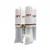 Особенности: Матерчатый фильтрующий элемент Сборка мусора в отдельный от фильтра мешок Простая установка мешка при помощи быстрозажимного хомута Крыльчатка из стали Подставка на роликах для транспортировки Jet DC-5000 - мощная вытяжная установка с большим объемом накопления древесных отходов, предназначенная для профессионального использования. Станки подключают к пылеотсосу через адаптер 4х100 мм с заглушками для незадействованных патрубков, при использовании в составе стационарной канальной системы или при работе с особенно мощным оборудованием разветвитель можно снять, освободив 180-миллиметровый коллектор. Конструкция установки классическая и полностью соответствует требованиям профессиональной эксплуатации: крыльчатка большого диаметра (356 мм) выполнена из стали, из нее же кожухи, детали корпуса, разветвитель и все прочие элементы, подверженные ударным нагрузкам от сучков и других крупных отходов. Четыре фильтрующих мешка с большой площадью поверхности очищают путем стряхивания внутрь без демонтажа, мешки-накопители крепятся быстрозажимными стяжными хомутами. Уровень очистки отходящего воздуха соответствует стандарту 30 мкм, этого достаточно при работе со строгальными станками, и другими подобными, не дающими мелкой взвеси. В случае использования с пильным и особенно шлифовальным оборудованием желательно применение индивидуальных средства защиты органов дыхания персонала или размещение установки за пределами рабочей зоны.