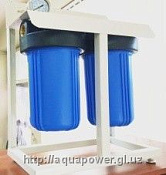 WF-10B2 Двухступенчатый фильтр собранный в стальной раме. Установлен маномерт для индикации давления входящей воды. Применяются Картриджи размера BIG(Диамерт 112мм и длина 254мм), комплектуются в зависимости от необходимости Картриджами PP10B, GAC10B, CTO10B, ION10B в различных сочетаниях.
