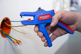 Большой, эффективный рабочий диапазон от 0,2 мм² до 16 мм² | точная работа благодаря регулируемому ограничителю длины (5–25 мм) | встроенные, легкодоступные бокорезы диаметром до 3 мм Cu/Al | эргономичная нескользящая многокомпонентная рукоятка