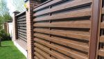 Металлический забор. Применяется для ограждения частных домов, коттеджей, загородных ресторанов, отелей, комплексов отдыха и др. Заполнение секций "Модерн" может быть с одной стороны или с двух сторон. Ламели, при двухстороннем варианте, крепятся в шахматном порядке. Это позволяет сохранить проветриваемость забора.