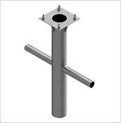 Трубная закладная деталь для изготовления фундамента по месту установки опоры освещения представляет из себя сварную металлоконструкцию, состоящую из опорной пластины и трубы, а также двух трубок необходимых для подвода кабеля. Закладная деталь поставляется в комплекте с гайками, плоскими и гравёрными шайбами.