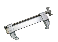 Механизм замка состоит из неподвижной части, регулируемой скобы, винта и стяжной гайки. Благодаря такому устройству возможно регулировать размер рабочей площади зажима.