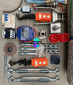 Редуктор (двигатель), щит электрический, ловитель, трос стальной 100м, фурнитура для консоли, магнитный тормоз, веревки, кабель 100м, и другие.