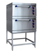 Жарочный шкаф двухсекционный ШЖЭ-2-01 нерж. духовка(предназначен для жарки полуфабрикатов из мяса, рыбы, овощей, выпечки мелкоштучных кулинарных изделий. Каждая духовка имеет три противня разм. 530х470х30мм., изготовленные из черного металла. Шкаф имеет раздельную регулировку мощности верхнего и нижнего блоков ТЭНов. Рабочий диапазон температуры 65-270С, установленный аварийный терморегулятор предохраняет шкаф от перегрева свыше 300С. Облицовка изготовлена из нержавеющей стали, потреб. мощн.-9,2 кВт, макс. темпер. шкафа-270С, время разогрева шкафа-30 мин., внутренние размеры шкафа-575х535х350 мм, габ. размеры-840x897x1475мм., масса – 157 кг)
