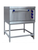 Жарочный шкаф односекционный ШЖЭ-1К-2/1духовка GN 2/1,конвекция, пароувлажнение, подставка (вся нерж.) (предназначен для жарки полуфабрикатов из мяса, рыбы, овощей, выпечки мелкоштучных кулинарных изделий. Духовка имеет одну решетку и один противень GN 2/1 размером 530х650х40мм., изготовленные из нерж. металла. Шкаф имеет раздельную регулировку мощности верхнего и нижнего блоков ТЭНов. Рабочий диапазон температуры 65-270С, установленный аварийный терморегулятор предохраняет шкаф от перегрева свыше 300С.Обладает возможностью принудительной конвекции и пароувлажнения. Изготовлен из нержавеющей стали, потреб. мощн.-