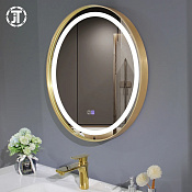Зеркало для ванной комнаты с подсветкой 3 цвета LED и противозапотевателом с металлической оправой.